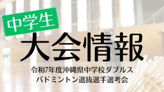 学生大会情報 【中学生大会情報】2025.11.29 令和7年度 沖縄県中学校ダブルスバドミントン選抜選手選考会 大会情報大会情報の詳細は以下のURLをご確認ください!うるま... 2025.11.25 学生大会情報