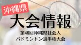 市民大会県内大会情報 グリーンスマッシュ団体戦大会要項 【県内大会情報】2024.07.07 グリスマ杯団体戦 市民大会 2024.06.062025.01.11 2024/06/06 大会要項を掲載しました! 大会要項 グリスマ杯団体戦 日時:2024年7月7日(日) 午前9時開場場所:うるま市石川体育館種目:クラス別団体戦(男子複・女子複・混合 チーム4〜8人)※詳細は要項をご確認ください 参加費:1チーム7,800円※詳細は要項をご確認ください 申込締切:令和6年6月30日(日) 午後7時まで 詳細や注意事項については添付の画像をご確認ください うるま市石川体育館 【ゴヤスポーツ】Googleカレンダーに大会情報を共有する方法スマホに大会情報を共有したいという方もいるのではないでしょう...
