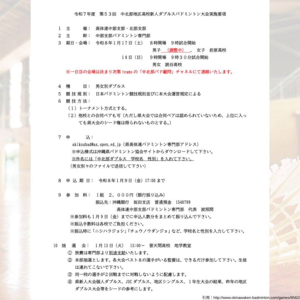 令和7年度 第53回 中北部地区高校新人ダブルスバドミントン大会 |沖縄県バドミントン協会