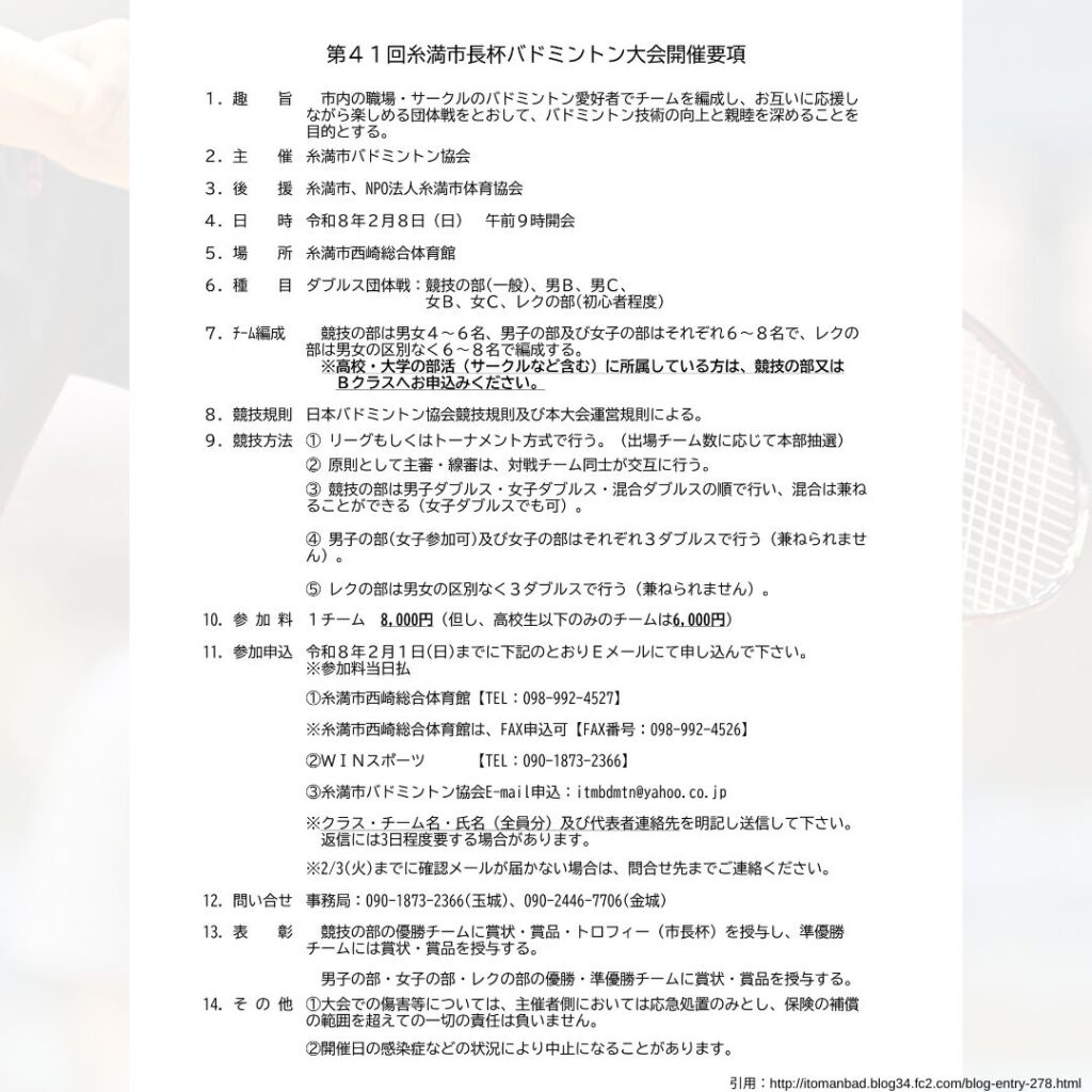 糸満市バドミントン協会ブログ 第41回糸満市長杯バドミントン大会の開催について
