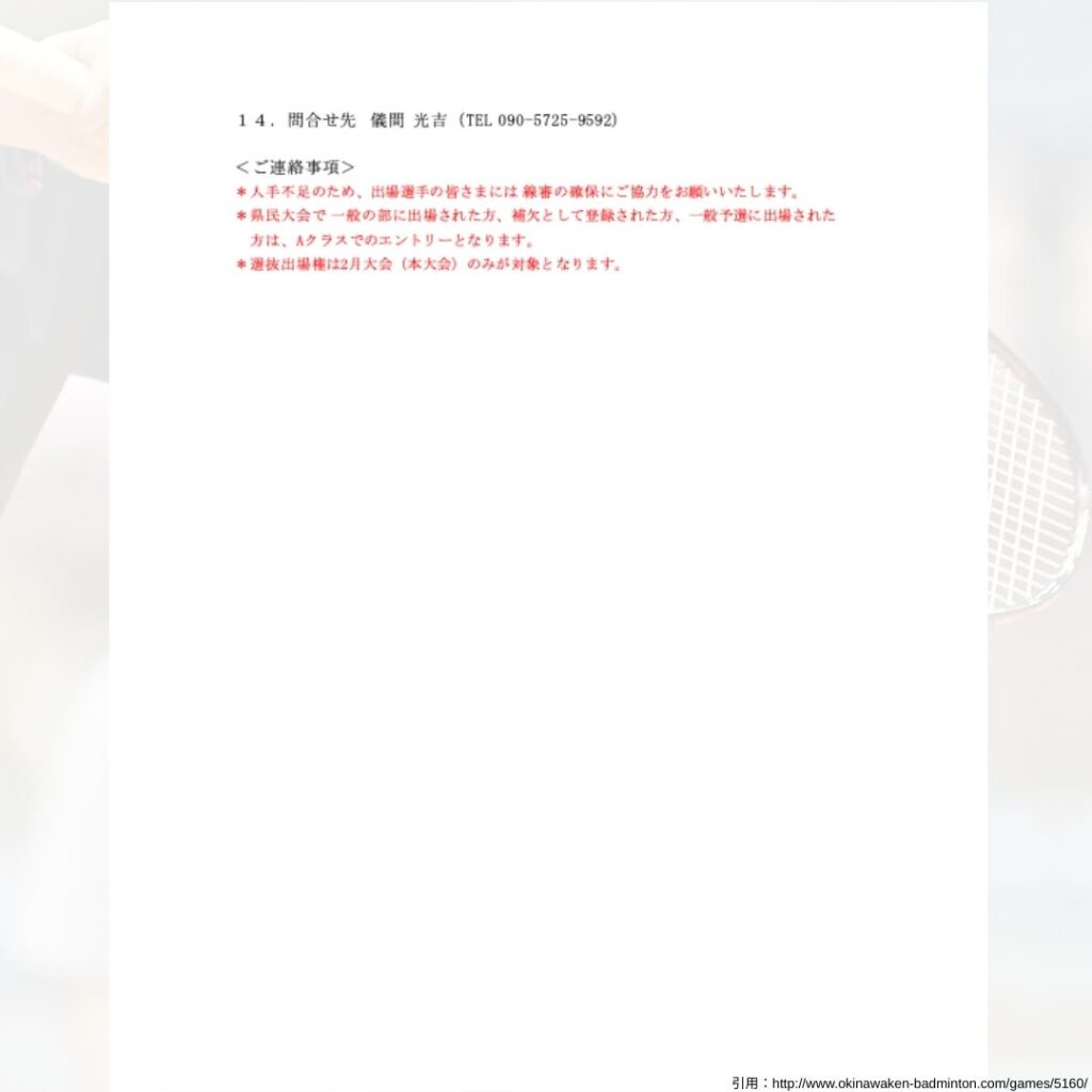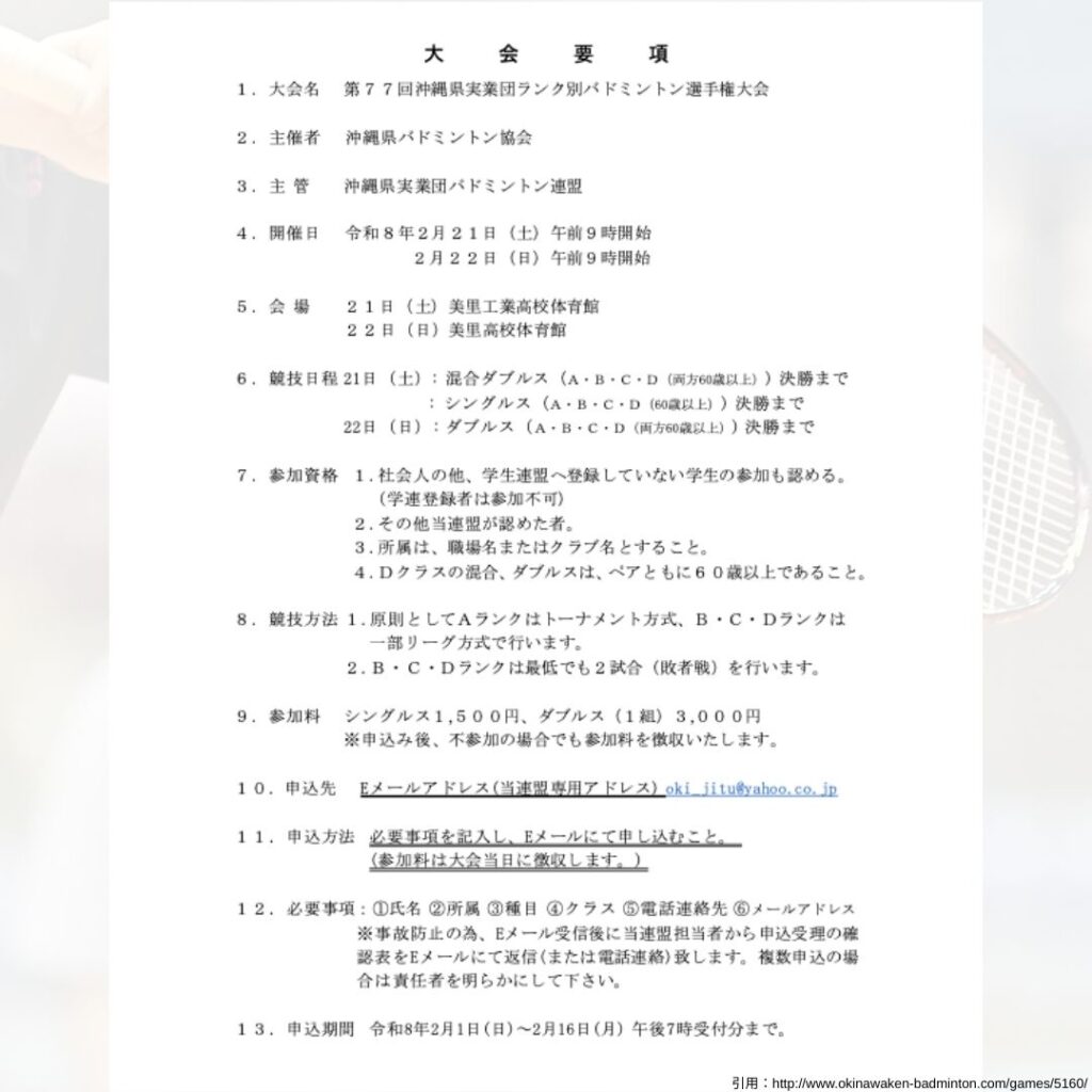 大会名:第77回沖縄県実業団ランク別バドミントン選手権大会