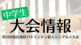 学生大会情報 【学生大会情報】2025.05.24〜05.25 第65回八重山地区中学校夏季総合体育大会バドミントン競技 学生大会情報 2025.05.212025.05.30 New!! 2025/05/30 大会結果を掲載しました!2025/05/21 大会情報を掲載しました! 目次 大会結果大会組合せ 大会結果 第65回八重山地区中学校夏季総合体育大会バドミントン競技_大会結果(pdfファイル) 大会組合せ 第65回八重山地区中学校夏季総合体育大会バドミントン競技(pdfファイル) 詳細は以下のURLをご確認ください! 組み合わせ - 八重山地区中学校体育連盟八重山中学校体育連盟公式ホームページ